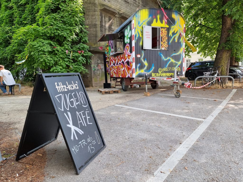 Nach jahrelanger Planung (es gab sogar mal Aufkleber zur Ankündigung) gibt es jetzt endlich das von Trierer Jugendlichen an oberster Stelle gewünschte JUGENDCAFE im Zentrum von Trier. Es sieht schon eher wie eine dauerhafte Demo vor dem Rathaus aus, wo im traumhaften Ambiente unter Bäumen in Sichtweite zum HGT nun von Mo-Fr ein Bauwagen stehen darf. Hinter vorgehaltener Hand erzählt man sich, dass das neue Café mit hauptamtlicher Kraft betrieben vom Kulturgraben besonders gerne von Mitarbeiter*innen der Stadtverwaltung Trier genutzt wird. Nur ab September ist wieder Schluss. Warum eigentlich und was ist aus dem ursprünglich geplanten Standort Schießgraben geworden? Was zählt Jugendkulturarbeit in Trier?